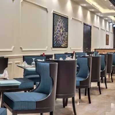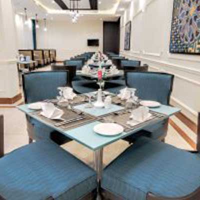 يوجد بدور الميزانين الذى يعلو بهو الفندق ويقدم اشهى وافضل الأطباق العالمية والتى تعد وتقدم على يد فريق من المتخصصين من امهر الطهاه حيث يقدم يقدم وجبات الافطارو الغداء والعشاء بمواعيد محددة